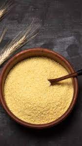 Semolina is a coarse flour made from durum wheat, known for its pale yellow color and slightly grainy texture. It is commonly used in Indian cuisine to prepare dishes like upma, halwa, idli, and snacks. Rich in protein and iron, semolina offers a mildly nutty flavor and firm texture when cooked. It is also easy to digest and provides sustained energy, making it a versatile and nutritious ingredient in daily cooking.